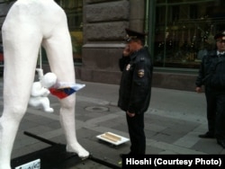 – Как только у меня пропадет злость, я просто перестану работать, для меня искусство – это способ выразить негодование. Даже если я делаю иногда какие-то положительные работы, они все равно создаются на фоне общего негодования по поводу системы, в которой мы живем. А что касается взаимодействия с коммунальными службами, полицией и обществом вообще, то из всех вещей, которыми я занимаюсь, стрит-арт – самое скучное и самое неадреналиновое занятие, которое только можно себе представить. Первое время я волновался, мне было страшно делать ту инсталляцию с ногами и младенцем. Я по-настоящему боялся, не мог уснуть ночью перед установкой скульптуры, все думал про завтрашний день. Но все получилось очень легко, и я понял, что можно выходить на улицу и делать все, что хочешь, хоть в пять вечера, хоть полдень. Я могу установить работу прямо в толпе людей, и люди меня просто не заметят. Например, я устанавливал скульптуры в виде мухи, фотографирующей конский навоз, недалеко от Эрмитажа, прямо на пешеходном переходе, вокруг была огромная толпа, и отреагировали только какие-то туристы, которые похлопали меня по плечу, дали понять, что им работа нравится. Словом, обычно никто не мешает, а могут даже похвалить, большой палец показать.