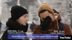Многие, может быть, уже видели его в Фейсбуке - мужской голос за кадром задает несложные вопросы о русской культуре и истории, молодые люди на улице отвечают. Точнее, пытаются отвечать, показывая незнание «прописных истин». К сожалению, я была одной из опрошенных, и могу заверить: это монтаж.
