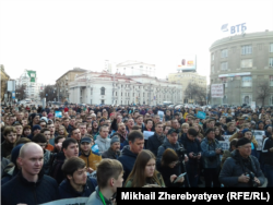 На митинг против коррупции в Воронеже, по данным организаторов, пришли около двух тысяч человек, преимущественно молодежь.