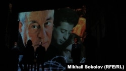 Марк Розовский: Вы знаете, когда мы работали над постановкой, я не скрою, у нас были очень интересные репетиции. Потому что мои актеры не то чтобы они спорили со мной, многие высказывали свои какие-то позиции гражданские, поначалу робко, потом доходило иногда до каких-то очень острых моментов. Но мы искали истину вместе, потому что дело театра отстаивать позицию гуманизма, человечности. Опять-таки это все на документальной основе. Я эту историю, с чего началось: я вообще шел по Арбату и увидел книгу Родзаевского, обращенную к нам.