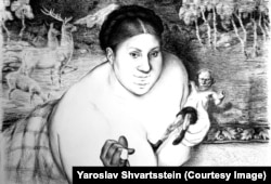 Ярослав Шварцштейн: Нет, это не было издано. Вообще все, что здесь вы видите, было нарисовано только для этой выставки. Дело в том, что когда я прочитал "Метель", мне просто захотелось все это изобразить. Мой блокнотик с рисунками лежал у меня два или три года, так как я не знал, что мне с ним делать. А потом я показал его Вадиму Захарову, и он сказал, что это очень интересно и что здорово было бы увидеть все это в большом размере. Так что это не книжные иллюстрации, а эксперимент, который мы проводим вместе с Вадимом. К слову сказать, это не первое наше соединение с Владимиром Сорокиным в работе. Несколько лет назад я нарисовал несколько сцен из "Дня опричника", а позднее писатель по предложению своего друга создал к каждому из 20 моих рисунков каллиграфии с текстами, которые не цитировали, не повторяли книгу. И в результате получилось то, что мы назвали "Опричная книга".