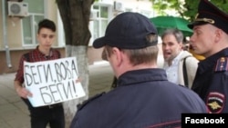 – Я стоял с плакатом один час сорок минут. Затем подошел незнакомый парень, представитель организации “Молодая Гвардия”. Он ходил рядом со мной, а потом встал и крутился вокруг своей оси. Я не понял, с какой целью он это делает. Я попросил моего друга узнать у полицейских, кто этот человек. Полицейские сказали, что он просто их знакомый. Когда прошло согласованное время пикета, я стал сворачиваться. В этот момент меня задержали полицейские. Они потребовали предъявить документы. Паспорта у меня с собой не было. Это и стало формальной причиной моего задержания. Кроме того, оказалось, что парень из "Молодой Гвардии" тоже проводил пикет. И якобы я нарушил минимально допустимое расстояние между пикетчиками. Полицейские посадили меня в машину и увезли в участок. Там я долго разговаривала с человеком из центра “Э”.