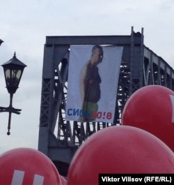 Почти под конец ожидания случился резонанс: на пролете железнодорожного моста, установленного напротив парка в качестве памятника, два человека развернули огромный баннер с известной фотографией Навального топлесс из Геленджика. Фото было подписано "СИСЯН 20!8". Митингующие поворачивались и фотографировали, через минутку выбежал Навальный, коротко всех поприветствовал, сообщил, что с того времени знатно успел похудеть, и, пообещав скоро начать, ушел со сцены. Митингующие еще немножко пофотографировали баннер, а затем снова вспомнили про него, только когда двое полицейских полезли его снимать.