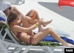 Но все-таки основную часть жизни Ксении Собчак в начале "нулевых" – по крайней мере, для стороннего наблюдателя – составляли овеянные гламуром высоких нефтяных цен светские тусовки. Как, например, эта – вручение наград лучшим папарацци и светским репортерам в одном из московских клубов в декабре 2005 года:
