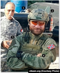 Эксперты CIT обратили внимание, что одна из этих фотографий – человека с автоматом в кузове пикапа – во многих деталях совпадает со снимком, опубликованным Олегом Блохиным в своем аккаунте в социальной сети "ВКонтакте". Оружие – точно такой же доработанный автомат Калашникова, как и на фото "бойцов ЧВК Туран". Сам пикап точно такой же расцветки и с таким же тентом не раз появляется в репортажах Блохина из Сирии. Экипировка "турановца", стоящего в кузове пикапа, до мельчайших деталей совпадает с той, что можно увидеть на фото Олега Блохина из сирийского города Дейр-эз-Зор. В фейсбуке Блохина есть видео, где он едет в этой экипировке по сирийской пустыне в кузове пикапа.