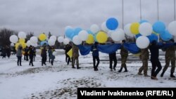 По случаю Дня соборности патриотическую акцию в станице Луганской (Луганская область) провели волонтеры, военные и школьники. В небо над городом, как сообщает пресс-центр АТО, поднялся флаг размером шесть на одиннадцать метров и полетел в сторону оккупированного Луганска.
