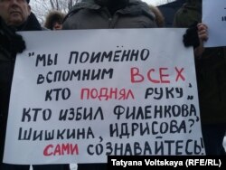 Многие участники акции говорили о том, что власть сейчас тестирует общество – и если оно отступит, то фальшивые процессы и пытки будут набирать обороты. Историк Даниил Коцюбинский вспомнил, как читал стенограммы допроса своего деда, и документы времен большого террора выглядели точь-в-точь, как сообщения о сегодняшних пытках.
