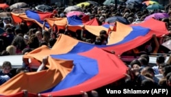 Депутат от оппозиции Никол Пашинян, который добивался отставки Саргсяна на встрече 22 апреля, возглавил шествие сторонников к мемориальному комплексу на вершине холма в Ереване.