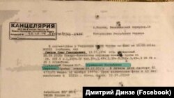 Дмитрий Динзе опубликовал в фейсбуке справку, направленную в октябре 2017 года консульству Украины в Екатеринбурге от управления Федеральной службы исполнения наказаний по Ямало-Ненецкому округу Министерства юстиции России.