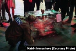 – На Арбате полицейские направили на меня большой фонарь, чтобы осмотреть клетку. Как только увидели табличку про пытки, сразу ее сорвали. Потом оттащили меня с центральной точки улицы, передвинули куда-то, окружили кольцом. При этом одна девушка все время стояла рядом с клеткой, пыталась греть мою руку, растирала ее, потом даже кто-то накинул на клетку куртку, чтобы мне не было холодно. Люди говорили: "не переживай, сейчас все закончится, все будет хорошо", пытались проявить какую-то заботу, но при этом не препятствовали задержанию. Мне интересно, будет ли случай, когда люди станут препятствовать полиции?
