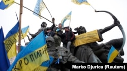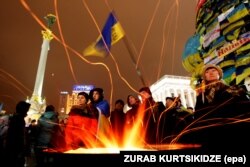 В ответ на площадь Независимости в центре Киева вышли многочисленные демонстранты. Так началась "Революция достоинства", или Евромайдан.