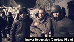 Фотограф агентства "Рейтер" Глеб Гаранич, получивший ранение во время столкновений на Майдане, фотографирует бойцов спецподразделений.