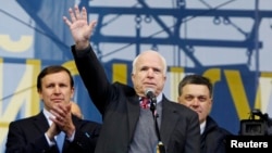 15 декабря на площади Независимости в Киеве демонстрантов приветствовал американский сенатор Джон Маккейн (умерший в этом году).