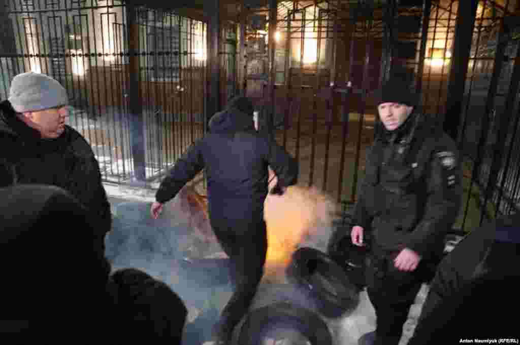 У здания российского посольства в Киеве 25 ноября прошла акция протеста против захвата Россией кораблей ВМС Украины у Керченского пролива. Акцию проводит украинская праворадикальная организация С14.