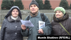Текст обращения к Владимиру Путину у могилы Сталина зачитал пенсионер, сын "врага народа" Алексей Нестеренко. Он и другие участник акции потребовали от президента принять закон "О запрете прославления Сталина".
