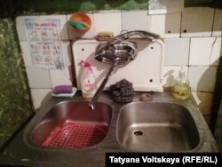 Дальше кухня: ободранные стены, столики, шкафчики, кастрюли, сковородки, на закопченном облезлом потолке – "лампочка Ильича". Раковина выглядит экстравагантно – там смеситель с душем: ванной в квартире нет.