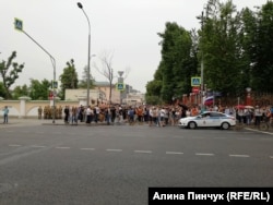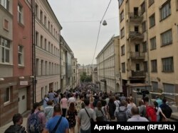 Возле Петровки, 38 (здания ГУВД), практически никого не осталось, люди двинулись дальше, в сторону Триумфальной площади, сообщает корреспондент Радио Свобода.