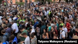 В Москве сотрудники полиции и Росгвардии на время оцепили Пушкинскую площадь, на которой собрались участники несогласованного с властями шествия по Бульварному кольцу. Об этом с места событий сообщает корреспондент Радио Свобода.