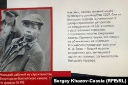 Репрессии достаточно подробно представлены на выставке, отдельный стенд посвящён культу личности Сталина, но ни репрессии, ни культ личности не выведены на первый план. "Выставки содержат очень много информации, это тысячи страниц текста, который весьма умно скомпонован. Если ты хочешь найти что-то про репрессии, про опричнину, про коллективизацию, ты это найдёшь. И если ты придёшь к ним с претензией, то они скажут: "Вот же, всё есть". Но если ты придёшь просто как посетитель, то тебе такие сюжеты, скорее всего, в глаза не бросятся, – говорит Клименко. – Там панно на стенах, на них картинки и слоганы. Воспринимаются слоганы в первую очередь. Ты заходишь в зал Александра Невского, и там огромное панно с его изображением и написано: "Крепить оборону на западе, друзей искать на востоке". Ты можешь ничего больше не читать про Невского, но слоган ты увидишь".