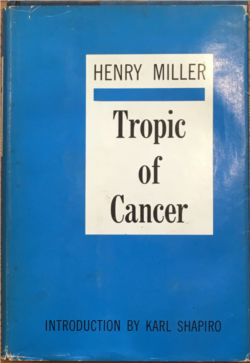 Он долго был запрещен у себя на родине. Первое парижское издание "Тропика Рака", 1934 года, имело предупреждение на обложке: "Не для ввоза в Великобританию и США".
