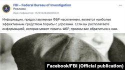 “Информация, предоставляемая ФБР населением, является наиболее эффективным средством борьбы с угрозами. Если вы располагаете информацией, которая может помочь ФБР, просим вас обратиться к нам”, – говорится в рекламе. Ссылка ведёт на русскоязычную страницу программы контрразведки ФБР в столице США Вашингтоне.