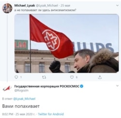 Поначалу именем Роскосмоса оказался подписан и старый твит Дмитрия Рогозина, который снова оказался в центре внимания после успешного запуска космического корабля Crew Dragon компанией SpaceX Илона Маска. В апреле 2014 года глава Рогозин предложил американцам отправлять астронавтов в космос с помощью батута. После успешного запуска Crew Dragon Маск ответил Рогозину, сказав, что "батут работает". В четверг и этот твит был удален (его копия осталась по этой ссылке).