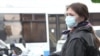 Москва, женщина показывает QR-код для поездки на транспорте полицейскому, 17 апреля 2020 года