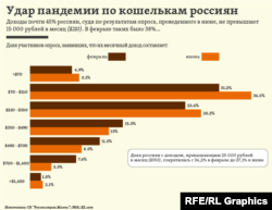Каждый пятый респондент сообщил о значительном падении доходов с начала распространения в России коронавирусной инфекции, а каждый десятый – о полной потере заработка.