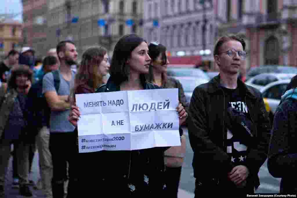 15 июля в Санкт-Петербурге начался сбор подписей против поправок к конституции. Более 3 тысяч человек выстроились в очередь на Невском проспекте. Акция продолжалась 4 часа. Полиция не препятствовала пришедшим выразить свою позицию. Фоторепортаж читателя Радио Свобода Евгения Звездорюка.