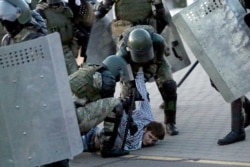 ОМОН и милиция хватают людей в торговых центрах и на улицах. Город полон бронетехники, силовиков, водометов. Люди кричат: "Уходи!".