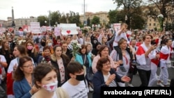 В центре Минске несколько тысяч человек – главным образом женщины – в субботу вышли на "Марш солидарности", с лозунгами против президента Белоруссии Александра Лукашенко и полицейского насилия.