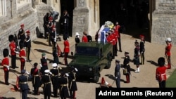 Гроб с телом покойного герцога до начала церемонии находился в частной часовне королевской семьи в Виндзорском замке. На похоронах присутствовали 30 гостей вместо ожидаемых 800 - жёсткие ограничения для присустствующих были связаны с пандемией коронавируса.