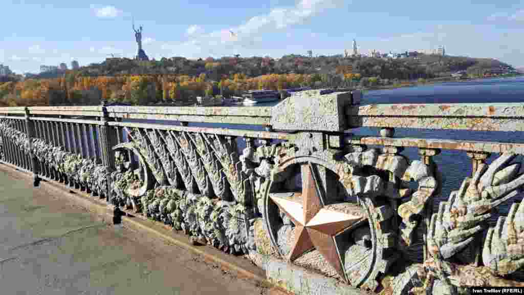 Киевский мост имени Патона: вид на правый берег Днепра, Мать Родину и Киево-Печерскую лавру