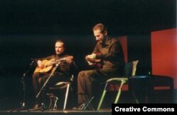 Соломон Волков: Двумя ведущими гитаристами нашего времени являются два брата из Бразилии - Серджио и Одаир Ассад. Я хотел продемонстрировать две показательные записи с последнего диска братьев Ассад. Один - это фрагмент из Дебюсси.