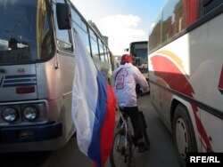 Прилегающие к месту сбора улицы забиты автобусами, на которых прибывали участники