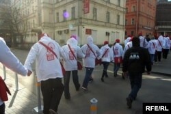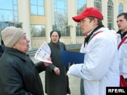 Перед началом основной акции - выходом на улицы для агитации москвичей - молодежь разогревается рэпом и народными танцами