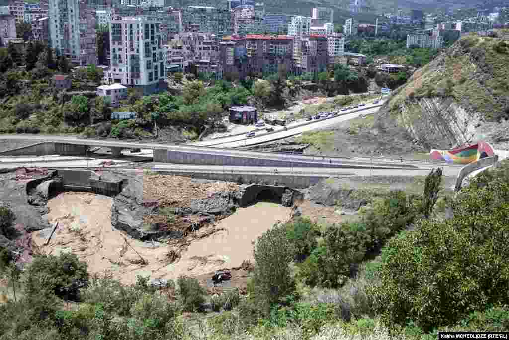 Река Вере, протекающая в центре города, вышла из берегов во время ливня, затопив узловые автодороги, после чего транспортное движение в центре грузинской столицы было полностью парализовано. Вода затопила тбилисский зоопарк. Сотни животных погибли. Однако, как утверждает администрация зоопарка, несколько львов, тигров, волков и крокодилов выплыли в центр города и разбрелись по улицам, наводя ужас на горожан. Власти ввели в столицу части специального назначения Минобороны и военную технику. Спецназовцы стали отстреливать хищников на улицах.