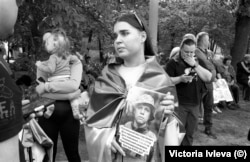 Из окна автобуса они видят радостную толпу встречающих: это все те, для кого война стала ощутимой на личном, частном уровне отдельной семьи – их родные мужчины ушли защищать Украину и пропали без вести или оказались в российском плену. Одни разворачивают огромные, чуть не в человеческий рост баннеры с именами и фотографиями сыновей, братьев, мужей, друзей, другие держат самодельные плакаты, а кто-то и просто тетрадные листы с фамилиями. Многие знакомы: принимают участие в постоянных акциях поддержки военнопленных - так они поддерживают и друг друга.