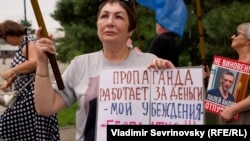 – Очень много комментариев, что мы зарабатываем якобы деньги [за участие в протестах], поэтому мы якобы три года здесь находимся. Мои убеждения бесплатные, в отличие от прессы. По центральному телевидению показывают, про тот же "Вагнер": сегодня они плохие, завтра очень плохие, вчера они были очень хорошие. То есть то, что хочет власть услышать. Все новости проплачены, а это мое убеждение, что Фургал невиновен, я выхожу [на протесты] четвертый год. Никогда [до этого] не участвовала в выборах толком, считала, что толку нет, была пассивна. И именно выборы губернатора показали нам, что есть надежда на честность, открытость. Народ, если захочет, может выбрать того, кого захочет. Когда Фургала взяли, для меня это было как руки заломили мне.