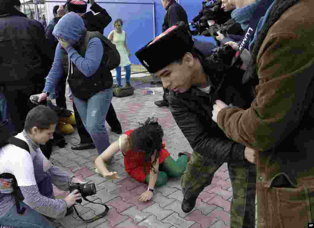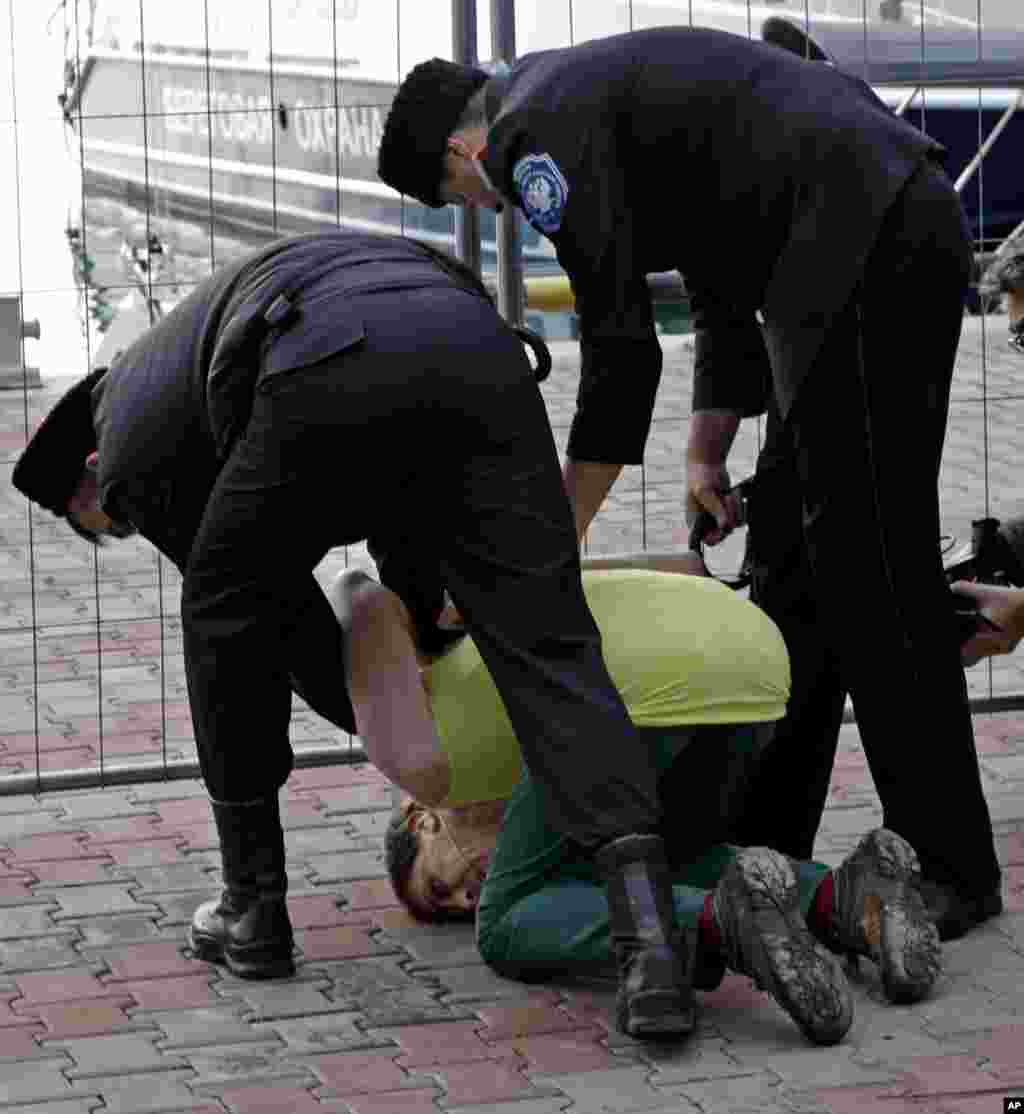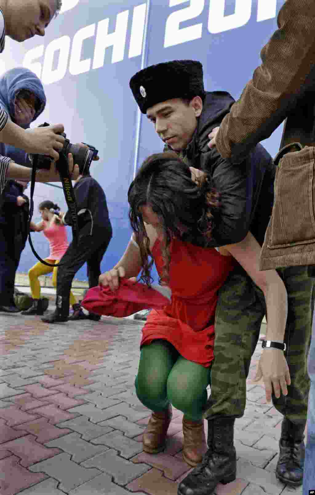 Несколько казаков подошли к группе людей, гулявших в районе Морского вокзала Сочи, среди которых находились участницы Pussy Riot Надежда Толоконникова и Мария Алехина. Один из казаков распылил над их головами слезоточивый газ, после чего начал хлестать девушек нагайкой. Другие "казаки" также стали бить гулявших. При этом, по свидетельству очевидцев, они выкрикивали угрозы в адрес Толоконниковой и Алехиной, требуя, чтобы девушки покинули город.