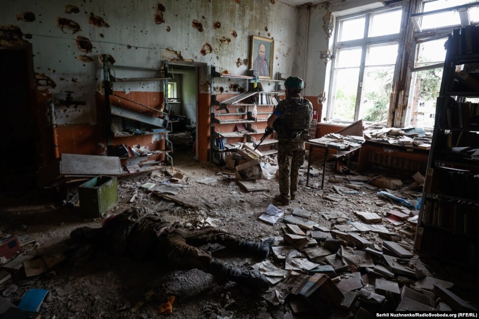 Военнослужащий ВСУ в разрушенном здании в Благодатном (Донецкая область), 17 июня 2023 года.