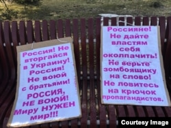 На велосипеде была вывеска “За Донбасс”. А на моем плакате – “Я против войны с Украиной”