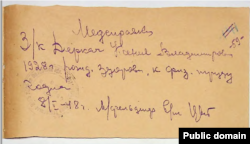 Далее в папку подшита расписка в том, что Деркач К.В. с материалами предварительного следствия ознакомлена, никаких дополнений и ходатайств не имеет. За сим следует медицинская справка: "Деркач Ксения Владимировна 1928 г. рожд. здорова, к физ. труду годна".