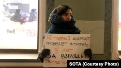 Активисты вышли поддержать 16-летнего анархиста Никиту Уварова, которого приговорили к 5 годам лишения свободы, и Зарему Мусаеву, находящуюся в СИЗО Грозного.