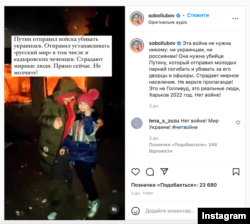 Российский общественный деятель, политик и юрист "Фонда борьбы с коррупцией" Алексея Навального Любовь Соболь пишет: "Эта война не нужна никому, ни украинцам, ни россиянам! Война нужна убийце Путину, который отправил молодых парней погибать и убивать за его дворцы и офшоры".