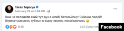 "Меня здесь не нужно освобождать, – пишет в фейсбуке основатель IT-компании Netpeak Software. – Здесь я и так свободен. Сегодня вам придётся решить одну из важнейших задач в вашей жизни – поддерживать кровопролитие и многочисленные смерти; или всё-таки выявить свою четкую гражданскую позицию и выступить против войны, не опасаясь, что вас осудят".
