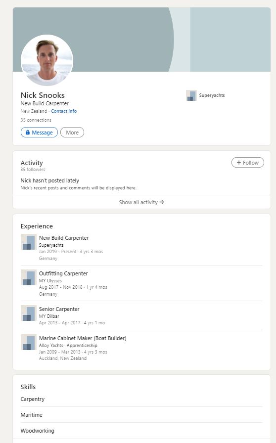 Как минимум еще один член экипажа "Шехерезады" из документов, опубликованных соратниками Навального, новозеландец Николас Снукс, также имеет опыт работы с высокопоставленными россиянами: в его LinkedIn написано, что с 2013 по 2017 год он был старшим плотником на яхте "Дилбар" российского миллиардера Алишера Усманова. Третьего марта власти Германии арестовали "Дилбар" из-за санкций, наложенных на Усманова после вторжения России в Украину.